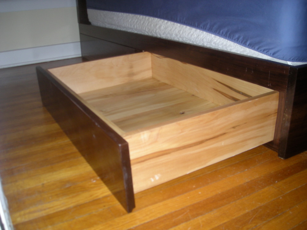 Jason’s bed drawers were made from solid maple to give the bed some hidden contrast.