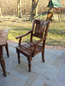 Jason's chairs were designed to be used in the booth that his company “Land and Stone” will have set up at a home and garden show in Chicago. The pattern of the blocks on the seat is the same pattern used in laying stone.