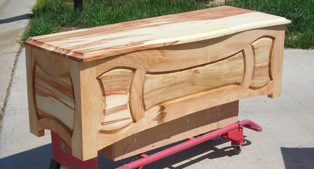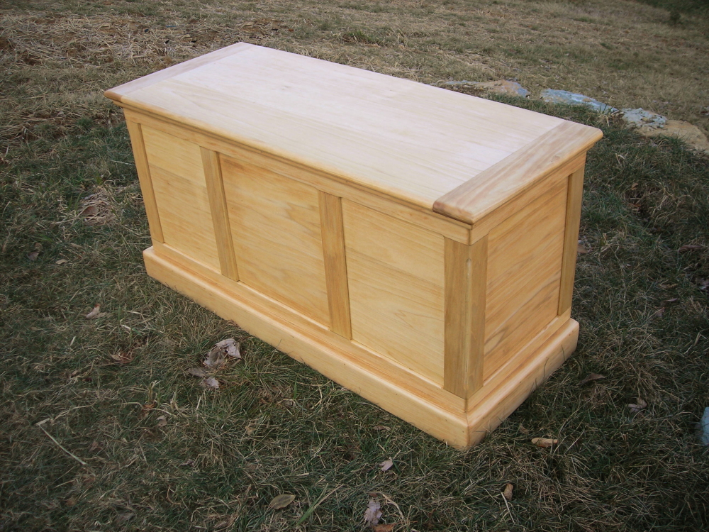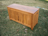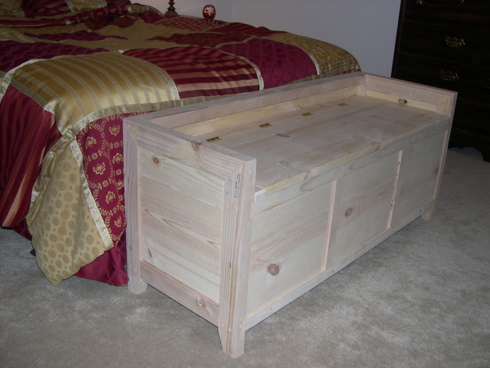 Tony and Rita’s pine blanket chest/bench was custom made to fit in their living room in between two air vents. This blanket chest/bench was also made to accommodate the height of their bay windowsill. This picture shows the wood grain pattern before the paint.