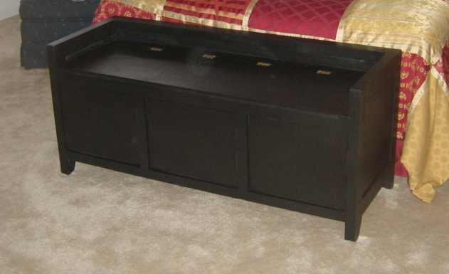 Tony and Rita’s pine blanket chest/bench painted black was custom made for to fit in their living room in between two air vents. This blanket chest/bench was also made to accommodate the height of their bay windowsill.