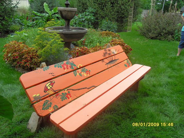 Eric's Chairs were designed by creating a color pallet and design themes from tropical and Keywest images sent to me by Eric. This is the Beach Bench.