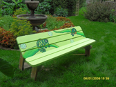 Eric's Chairs were designed by creating a color pallet and design themes from tropical and Keywest images sent to me by Eric. This is the Seafood Bench.