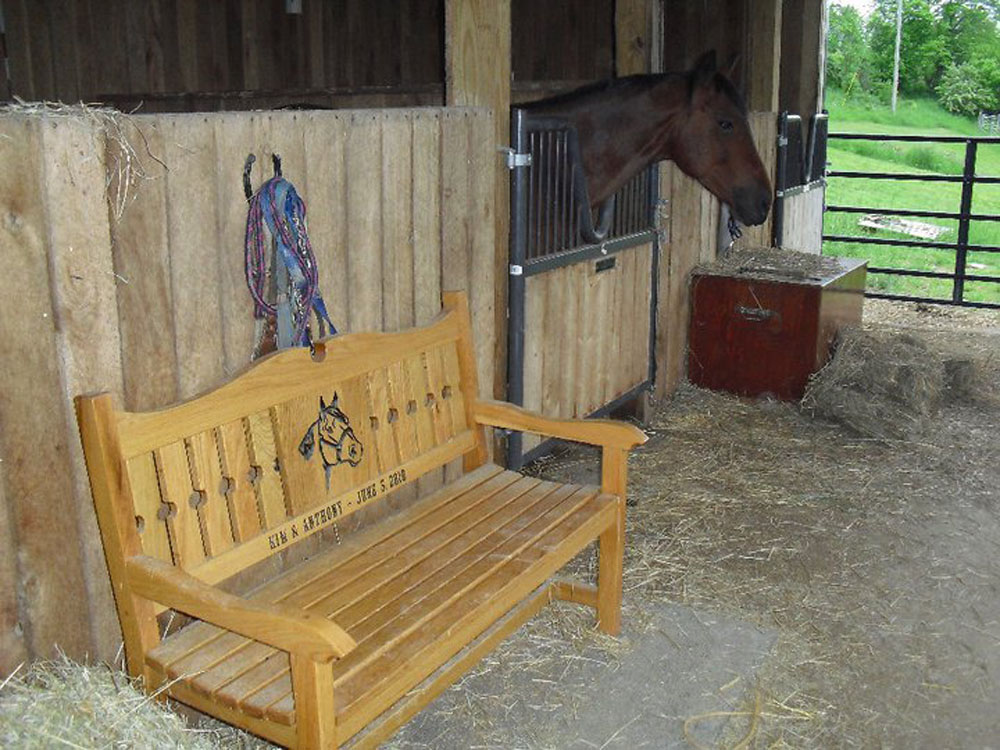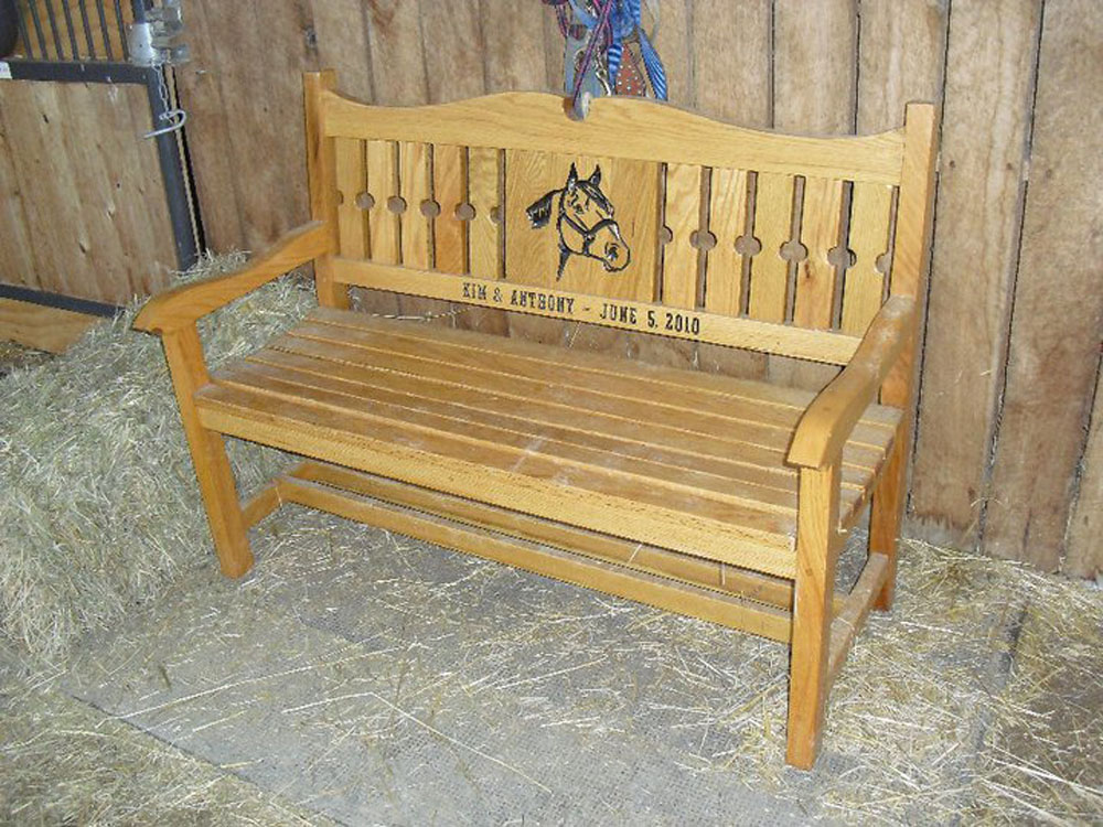 Kim and Anthony’s bench was made as a wedding gift. Both of them really love horses and living in the country so the theme of this wedding gift was meant to celebrate both.